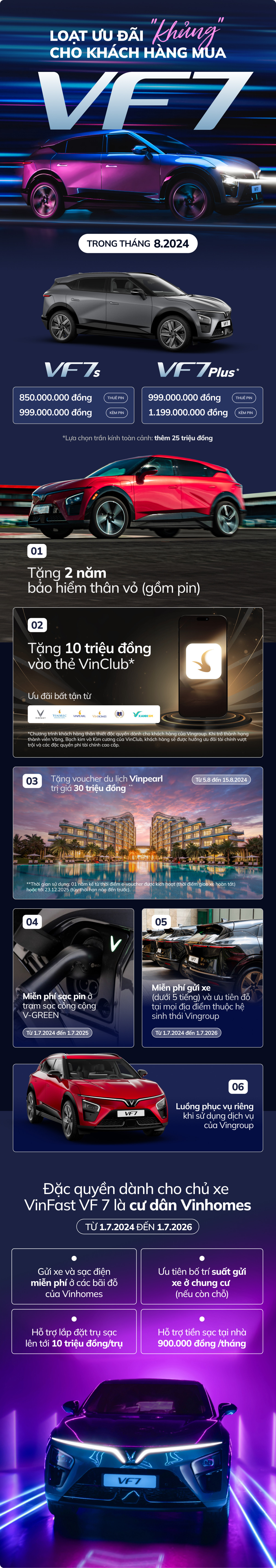 Với những ưu đãi thiết thực, VinFast đang mang đến cơ hội mua VinFast VF 7 với loạt đặc quyền “hời”, đi kèm những trải nghiệm hấp dẫn hơn bao giờ hết cho người dùng.