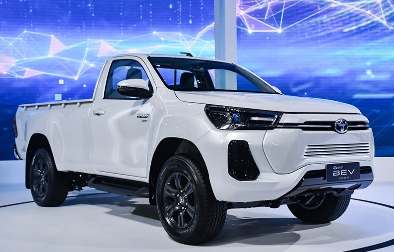 Mẫu concept Hilux Revo BEV là phiên bản chạy hoàn toàn bằng điện, được giới thiệu vào thời điểm kỉ niệm 60 năm thành lập của Toyota Thái Lan. Phần ngoại thất của phiên bản EV vẫn được lấy cảm hứng từ mẫu Hilux "truyền thống", tuy nhiên vẫn có một số thay đổi đáng kể.