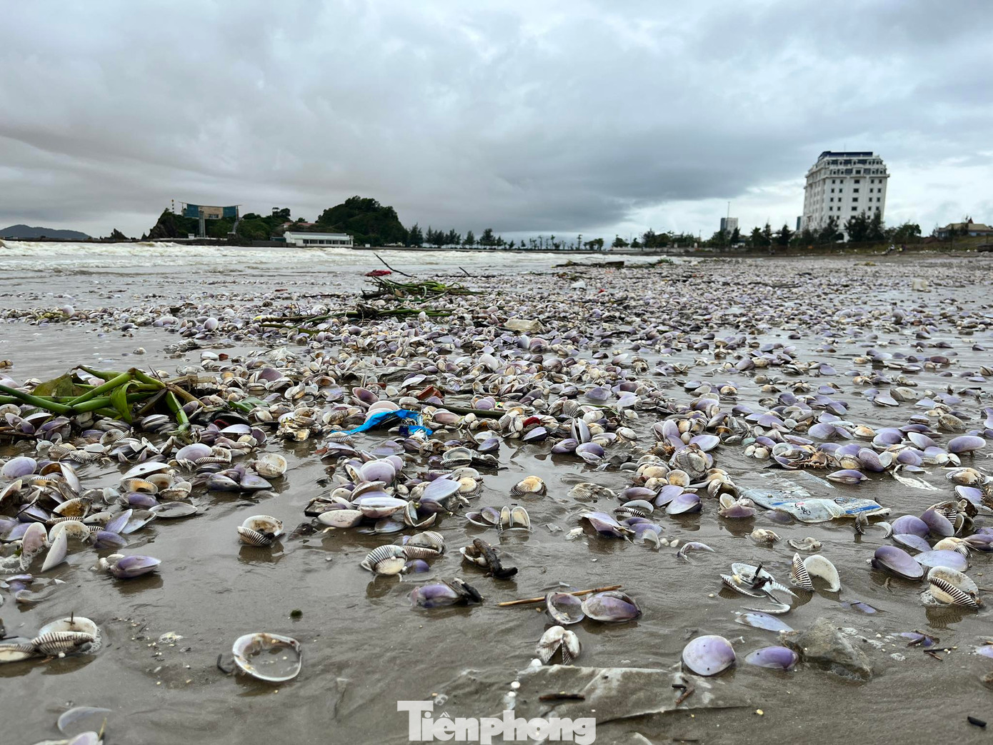 | Đến trưa 28/9, trên bờ biển Cửa Lò có rất nhiều vỏ ngao bị đánh dạt vào bờ. |