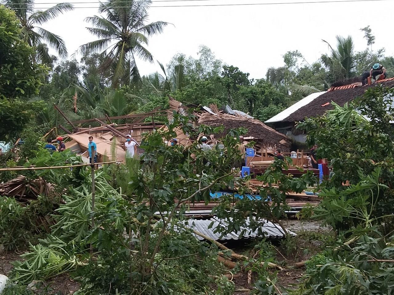 | Hàng chục căn nhà của người dân bị sập và tốc mái. |