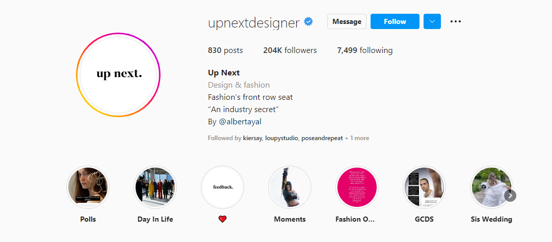 Giới mộ điệu luôn để mắt đến những nhà thiết kế mới nổi với tiềm năng phát triển. Địa chỉ uy tín trong công cuộc “đãi cát tìm vàng” được nhắc đến nhiều nhất là tài khoản Instagram @UpNextDesigner. Được sáng lập bởi nhà nghiên cứu truyền thông thời trang Albert Ayal, nền tảng UND được tạo ra nhằm tôn vinh những thương hiệu hay NTK mới. UND là cơ hội giúp những cái tên mới này tiếp cận gần hơn với công chúng.