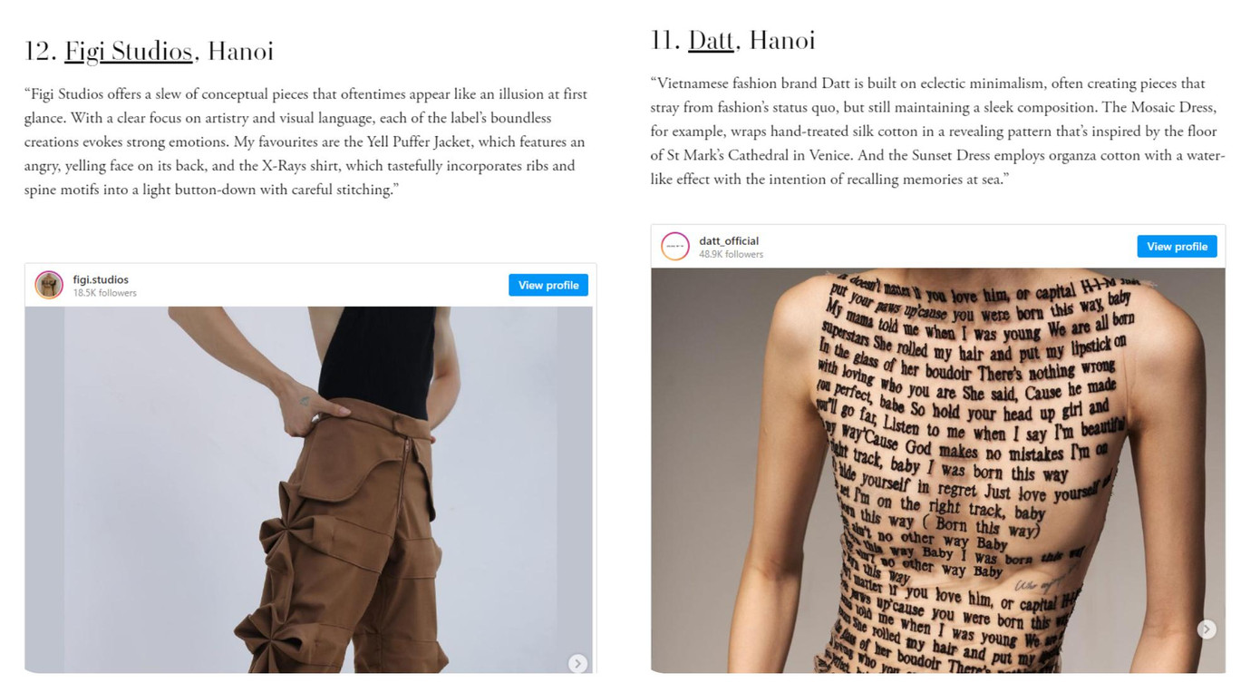 FIGI Studios gợi lên nhiều hào hứng bởi phong cách thiết kế mang đậm tính trực quan cùng hiệu ứng thị giác cao, rất gần với những gì mọi người thường nghĩ về thời trang tiên phong/thể nghiệm (avant-garde/experimental fashion).