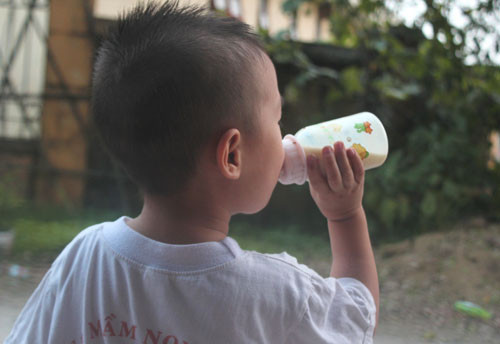 Nhiều bà mẹ cho con uống quá nhiều sữa công thức cũng khiến trẻ thừa đạm. Ảnh minh họa: MT.