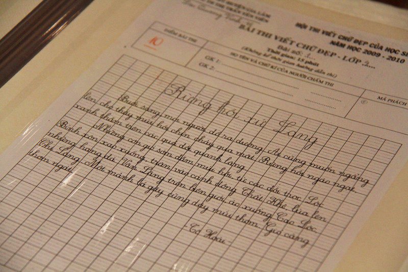 Trong khi đó, những chữ viết tay của các em học sinh nhỏ tuổi hơn đều rất đẹp và nắn nót. Ảnh: Trường Phong