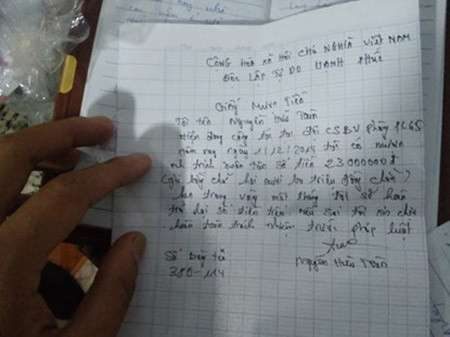 Anh Tân và chị Linh cho biết, Nguyễn Hữu Toàn trước đây thường hay uống cà phê tại quán cà phê Linh Nhi. Gia đình anh Tân đã cung cấp một tờ giấy mà gia đình nói Toàn đã viết ghi nợ, với nội dung: Nguyễn Hữu Toàn (hiện đang công tác tại Phòng PC65 Công an Gia Lai, Số bảng tên 380-114) vay nợ anh Tân ngày 1/12/2014 số tiền 23 triệu đồng.