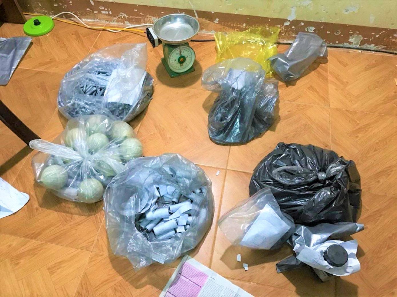 Bước đầu, các đối tượng khai đã bán được một số pháo nổ, khi đang sản xuất thì bị công an bắt quả tang. Tại nơi sản xuất pháo, công an thu giữ khoảng 5,6 kg pháo nổ các loại và khoảng 4 kg các chất dạng bột để sản xuất pháo nổ.