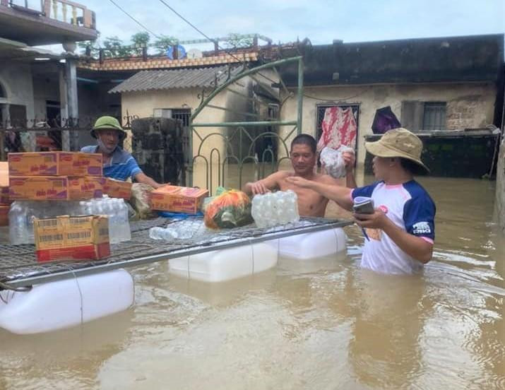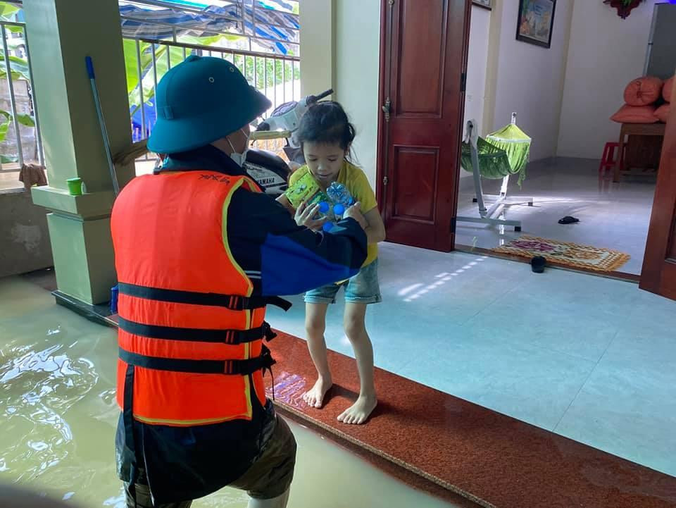 Run run trong dòng nước lũ, ông Phạm Văn Quang (xã Quỳnh Hồng, huyện Quỳnh Lưu) liên tục nói “cảm ơn”. Nhà ông ngập nước hơn 1m, cứ dâng cao dần cao dần, lợn gà chết trong dòng nước lũ chảy xiết. Nhận thùng mì gói và ít nước sạch từ xuồng cứu hộ, ông Quang vui mừng vì có thêm lương thực để cầm cự trong ngày mưa lũ.