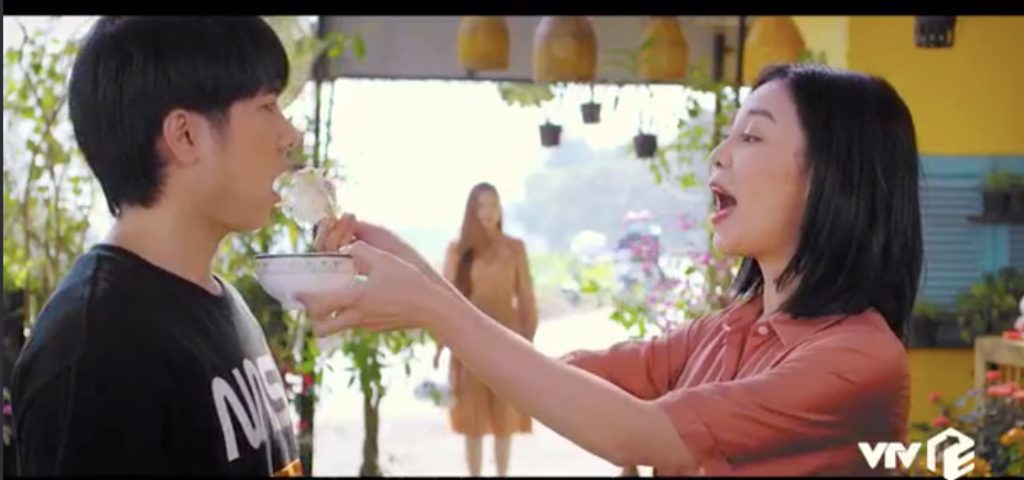 Ở một phân cảnh khác, Nghĩa (Tô Dũng) và Thanh (Anh Đào) ngồi nói chuyện về việc phơi khô cánh hoa hồng. Khi Nghĩa kéo tay Thanh để ngửi cánh hoa thì vô tình lọt vào tầm mắt của Phương (Quỳnh Châu). Cô nàng tức tối và giả vờ bị dằm đâm vào tay. Thấy vậy, Nghĩa vội vàng chạy tới hỏi han. Biết Phương đùa, Nghĩa mắng yêu bạn gái khiến Thanh chứng kiến không khỏi chạnh lòng.