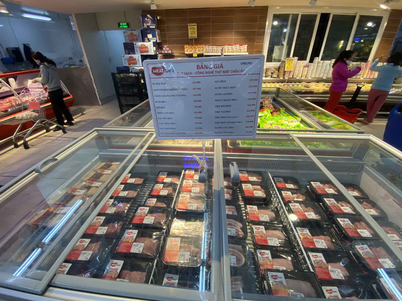 Thịt do các siêu thị phân phối có giá rẻ hơn, ba chỉ heo của siêu thị Big C (thương hiệu Song Đạt) có giá 171.000 đồng/kg, thấp hơn gần 70.000 đồng so với thịt mát Meat Deli