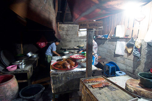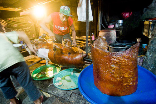 Lợn bày nguyên con ngoài quầy phục vụ thực khách. Ảnh: Balimanual.