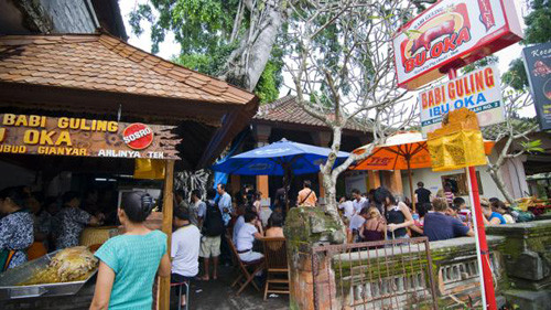 Ibu Oka là nhà hàng babi guling danh tiếng nhất ở Bali. Bạn có thể hỏi bất kỳ ai trên đảo và mọi người đều chỉ đến Ibu Oka ở Ubud, nơi nổi tiếng với khỉ, đền đài và những lớp yoga cho phụ nữ phương Tây. Các cửa hàng babi guling thường mở cửa rất sớm, từ 4 - 5h sáng tới 9 - 10h tối. Ảnh: BBC.