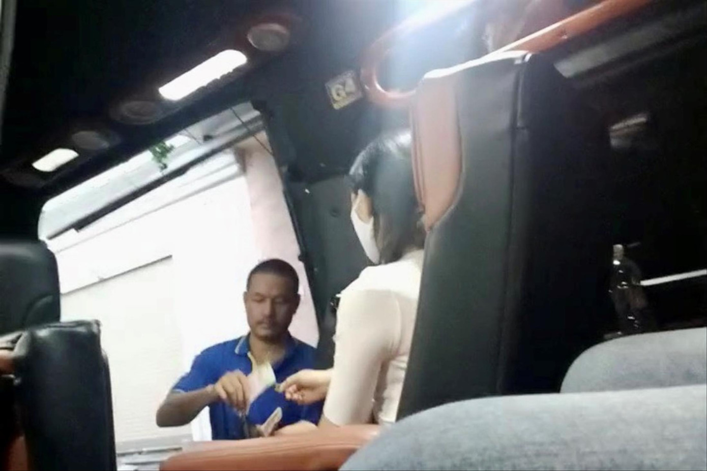 Một lúc sau, xe khách 29 chỗ biển kiểm soát 29B-314XX gắn tên nhà xe Dũng Minh đến. Lập tức, tài xế cùng nhân viên chạy ra, sắp đồ và đưa hành khách lên xe. Trên kính xe này có chiếc phù hiệu xe kinh doanh vận tải theo hình thức “xe hợp đồng” nhưng biển số vẫn có màu trắng.