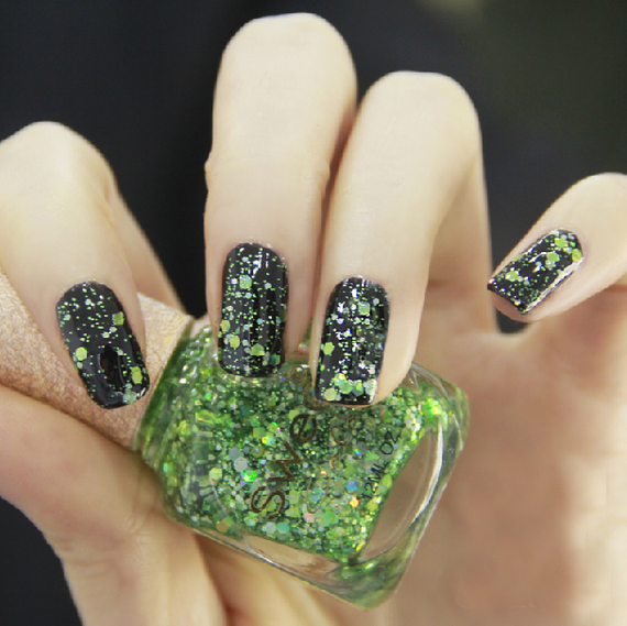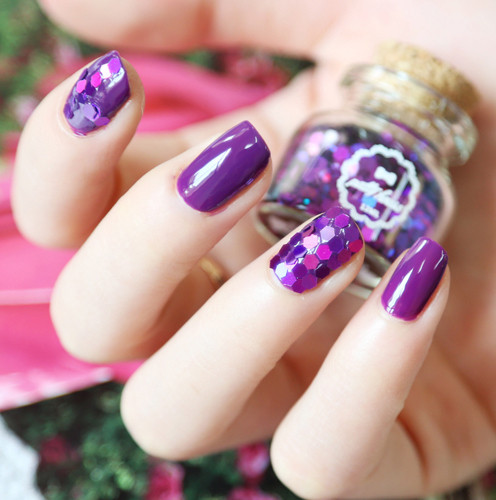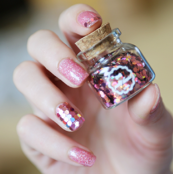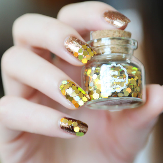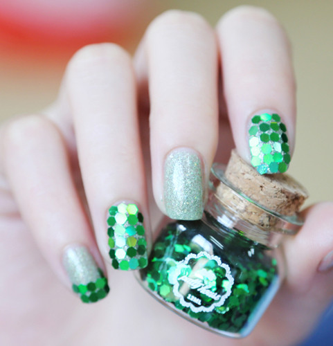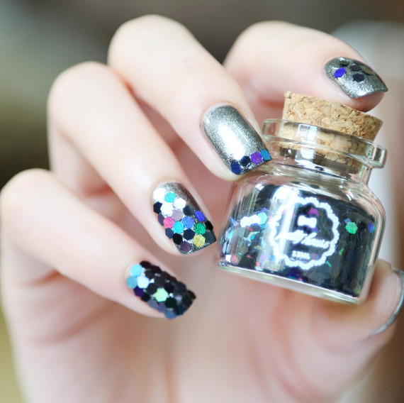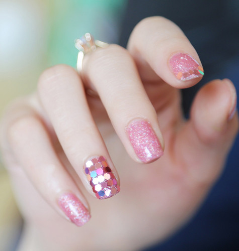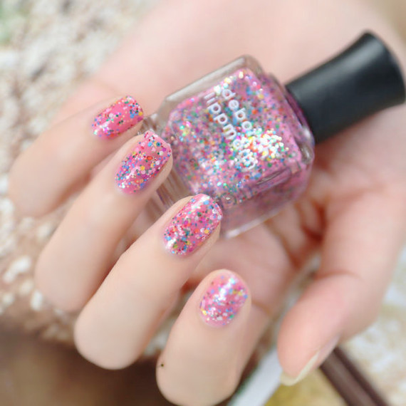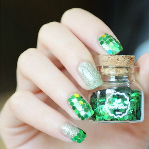 Xu hướng năm nay là sử dụng sơn móng tay với những hạt kim tuyến lớn, giúp bạn lấp đi những chỗ lồi lõm trên móng tay. Kiểu móng tay này rất phù hợp khi tới dự các buổi tiệc.