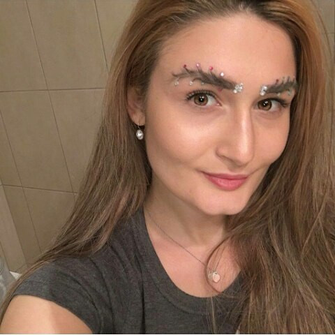 Bằng việc chải lông mày và tạo hình, gắn những hạt pha lê bé xíu và những hình ngôi sao, cô nàng đã biến lông mày của mình thành cây thông noel nhỏ xinh dễ thương.