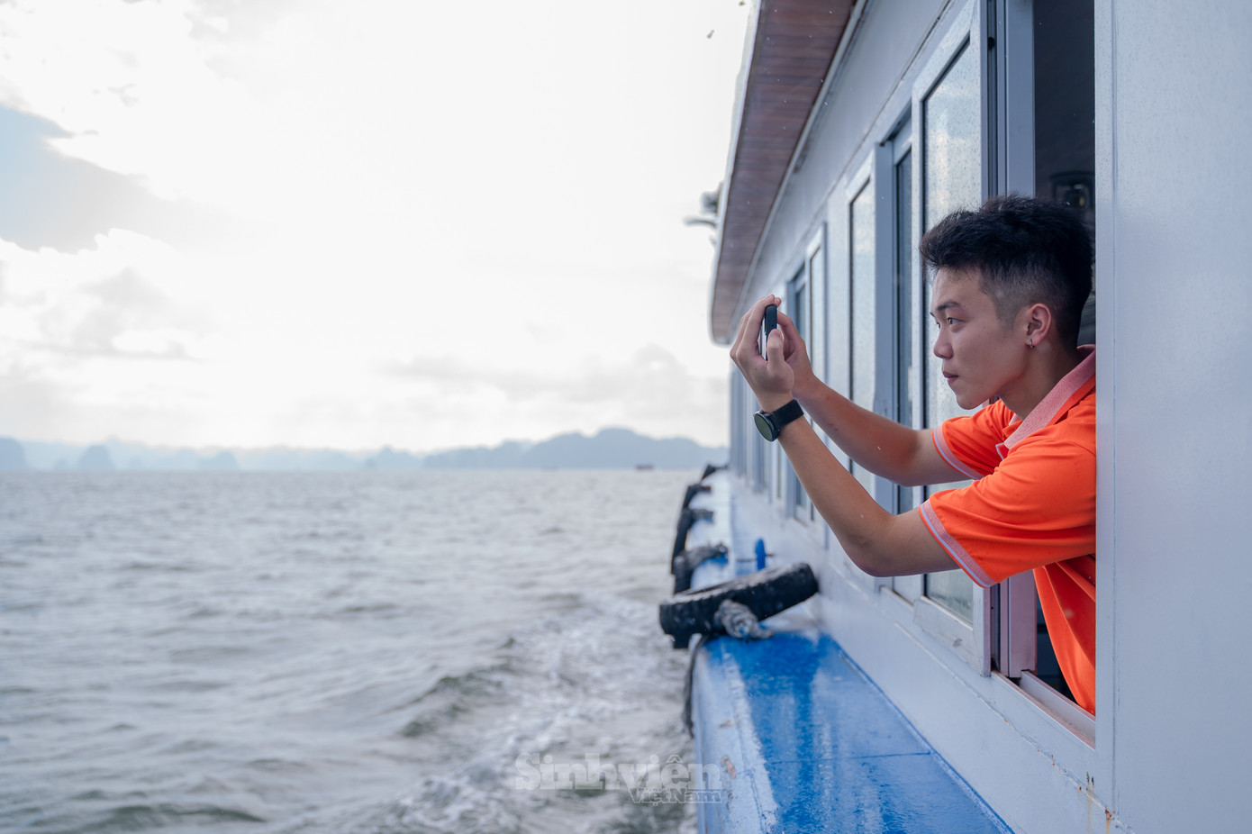 | Các tân sinh viên hào hứng với 'lớp học' đặc biệt trong chương trình kiến tập là những con tàu tham quan Vịnh Hạ Long. |
