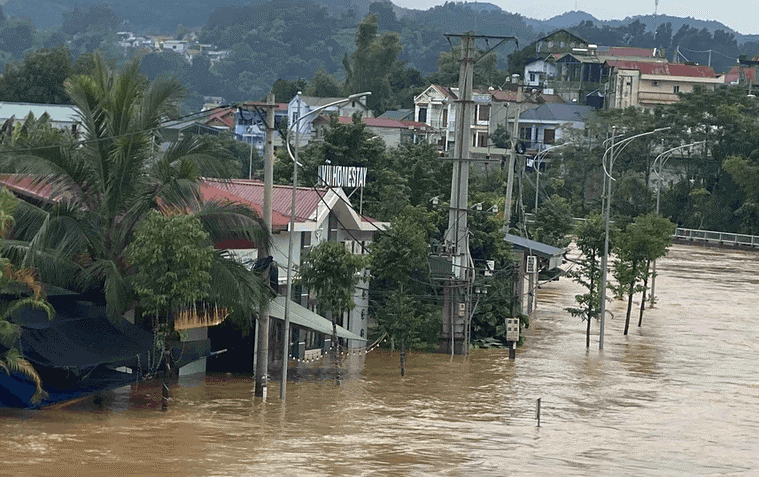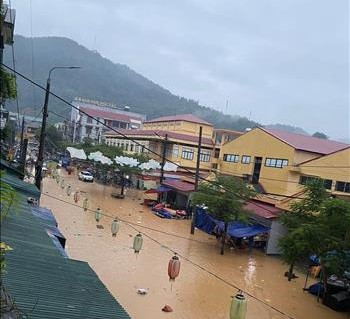 | Nước dâng cao, tràn vào làng bản, nhà dân ở huyện Bảo Lạc (Cao Bằng) |