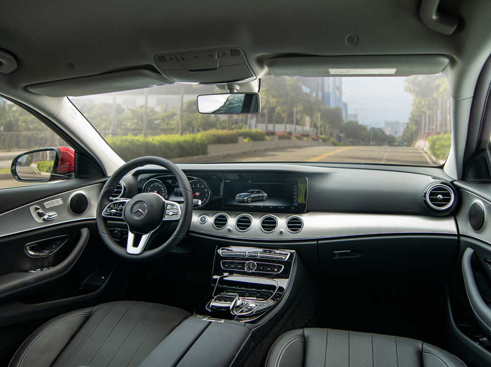 E 180 sở hữu không gian tương tác hiện đại, rộng mở và đậm chất công nghệ. Người lái có thể lựa chọn 3 chủ đề hiển thị khác nhau cho bảng đồng hồ kỹ thuật số, bao gồm ‘Cổ điển’, ‘Thể thao’ và ‘Hiện đại’. E 180 được ốp nhôm trên táp-lô và ốp gỗ đen trên cụm điều khiển trung tâm. Tay lái đa chức năng 3 chấu thiết kế mới được bọc da nappa với nút điều khiển bằng cảm ứng. E 180 vẫn được trang bị màn hình giải trí 12,3 inch cực kỳ sắc nét. E 180 được hỗ trợ kết nối Apple Car Play/Android Auto.
