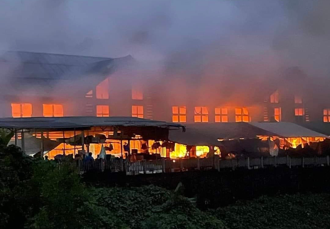 Chợ Khe Tre - khu thương mại trung tâm của huyện Nam Đông (TT-Huế) bị cháy lúc rạng sáng.