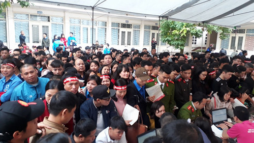 Hàng nghìn người đứng chờ từ sáng để được hiến những giọt máu nồng giúp đỡ bệnh nhân trong cơn hoạn nạn, đặc biệt là góp phần giảm tình trạng thiếu hụt máu trầm trọng trong những ngày giáp Tết