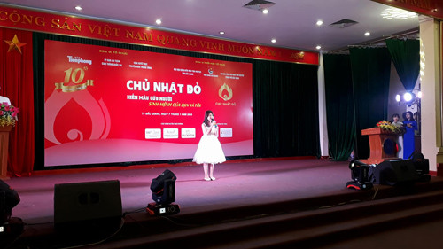 Quán quân Giọng hát Việt nhí 2017 Dương Ngọc Ánh tham gia biểu diễn chào mừng ngày hội hiến máu Chủ nhật đỏ. Ánh cho biết, mặc dù khá mệt do vừa di chuyển từ Hà Nội về nhưng em rất vui vì được hát trong một ngày ý nghĩa như thế này.