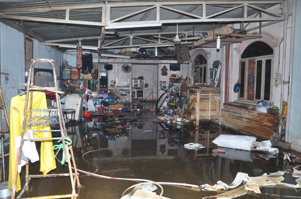 Ngọn lửa nhanh chóng cháy lan khắp nhà. Người này phải tìm cách phá mái tôn phía trên trèo ra ngoài thoát thân, may mắn không bị thương tích.