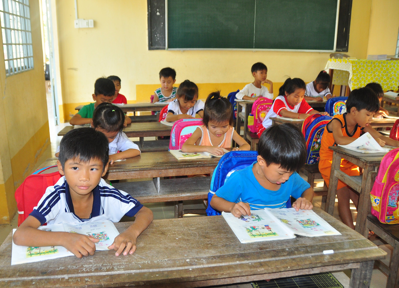 | Học sinh vùng biên giới tại Đồng Tháp trong giờ học. Ảnh: Hòa Bình |