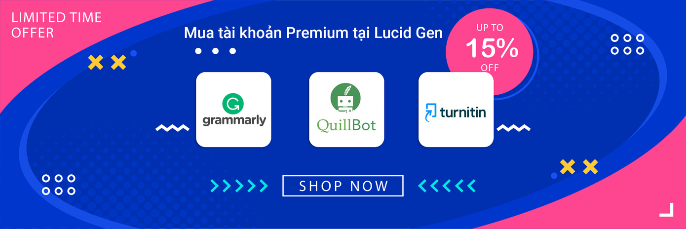 Lucid Gen tự hào cung cấp các tài khoản học tập Premium như Grammarly Premium, QuillBot Premium và Turnitin, những công cụ hỗ trợ học tập và nghiên cứu không thể thiếu trong thời đại số.