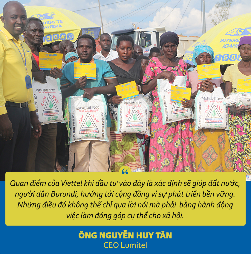Đặt chân tới Burundi, chúng tôi xác định vai trò của Lumitel không chỉ đơn thuần là kinh doanh đem về lợi nhuận, chúng tôi thấy mình phải có phần trách nhiệm trong việc thúc đẩy phát triển kinh tế - xã hội cũng như xây dựng mối quan hệ quốc tế giữa 2 nước để tạo dựng một hình ảnh đẹp của Việt Nam trên đất nước Burundi. Do vậy tất cả các hoạt động xã hội của chúng tôi đều đi vào chiều sâu và có tính thiết thực.