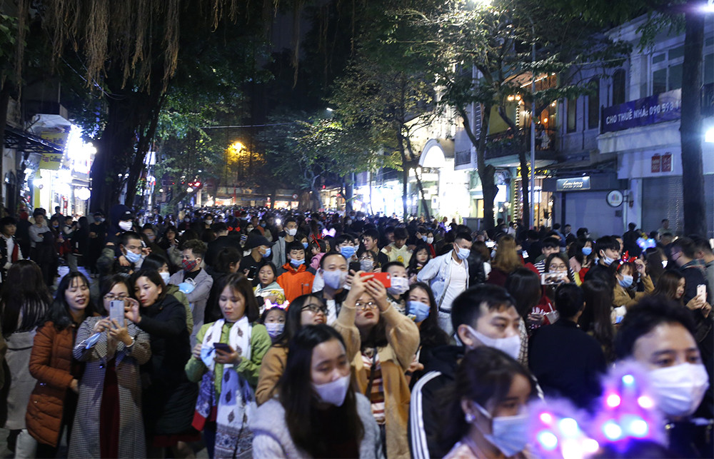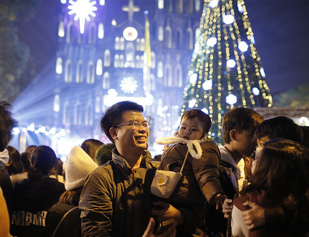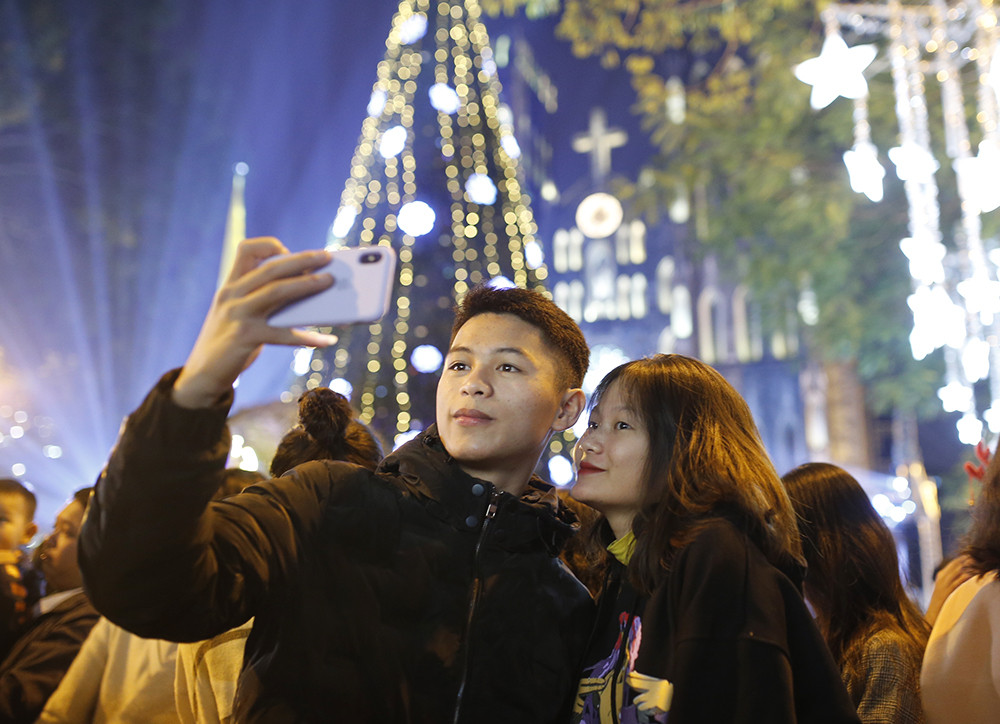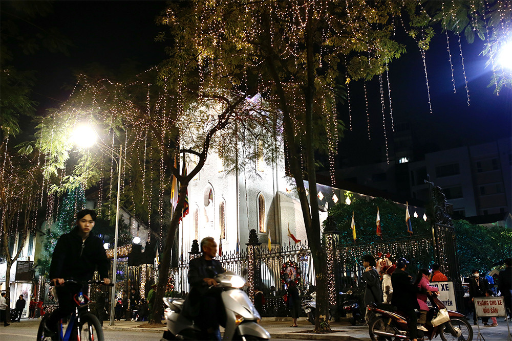 Đêm 24/12, hàng nghìn người đổ về nhà thờ Lớn Hà Nội để đón Giáng sinh.