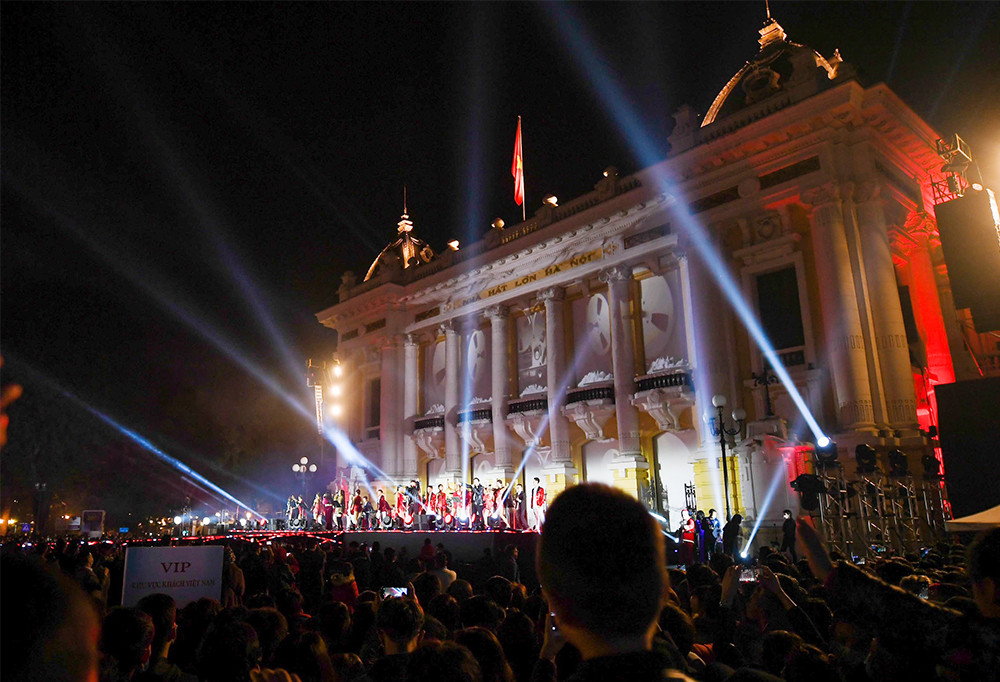 Nhà hát Lớn rực sáng ánh đèn màu. Đây là lần đầu tiên địa điểm này tổ chức đếm ngược đến khoảnh khắc 0h đêm Giáng sinh. Trước đây Nhà hát Lớn chỉ tổ chức lễ đếm ngược trong dịp Tết dương lịch và Tết Nguyên đán.