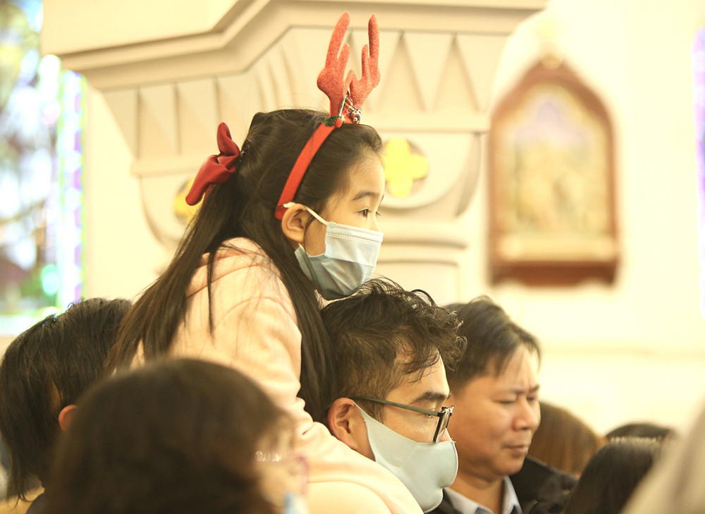 Em bé cùng gia đình dự Thánh lễ tại nhà thờ Cửa Bắc - Hà Nội