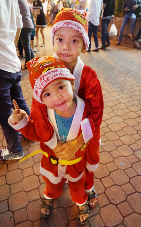 Những "ông già Noel nhí" đi chơi cùng gia đình.