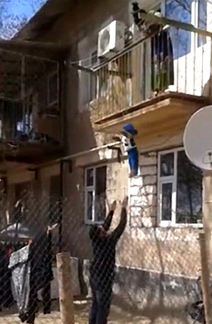 Akbota, người quay đoạn video gần nhà mình ở thành phố Astana, thủ đô Kazakhstan, nói: "Hai người thật ngớ ngẩn quá, sao có thể nghĩ đến việc thả đứa con của mình từ ban công như thế? Tôi thực sự bị sốc".