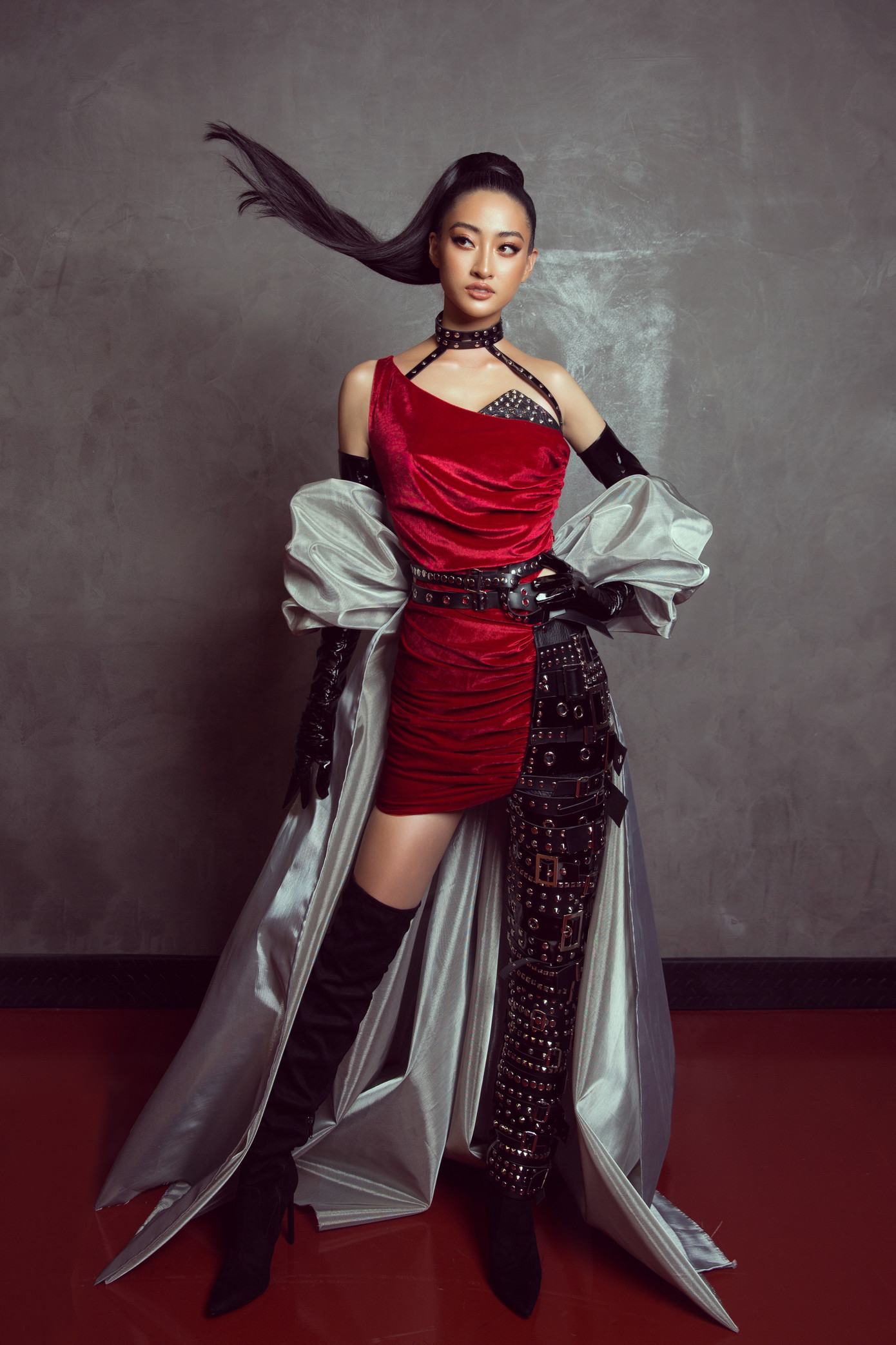 Nàng hậu biến hóa đầy ngạc nhiên với mái tóc cột cao, phong cách makeup tone nâu tây, khoác lên mình thiết kế đặc biệt kết hợp giữa sức mạnh của một chiến binh và vẻ đẹp của những cô gái đang tuổi xuân thì tràn đầy sức sống.