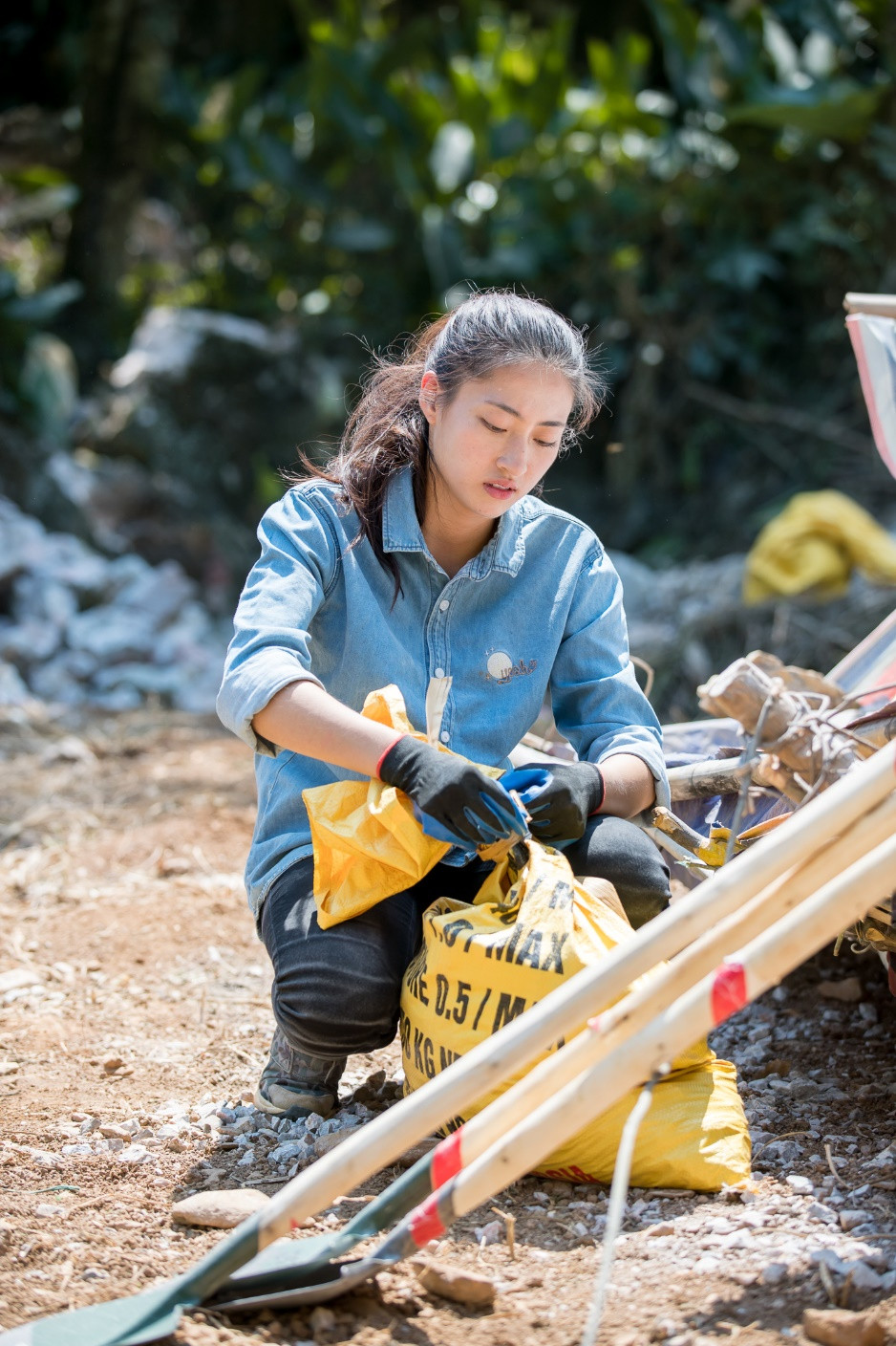 Lần đầu leo núi, Linh và ekip phải dừng chân nghỉ rất nhiều lần do chưa quen. Thiết nghĩ bình thường 4-5 tầng lầu chúng ta đều đi thang máy mà đến đây phải leo gần 100 tầng lầu, Linh cảm thấy rất khâm phục và thương người dân ở đây. Mỗi ngày họ không chỉ đi 1 lần mà lên – xuống núi rất nhiều lần, họ không chỉ đi tay không mà còn mang vác rất nhiều đồ đạc.