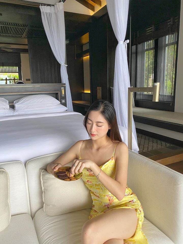 Hoa hậu Lương Thuỳ Linh diện váy vàng hoạ tiết nhẹ nhàng khoe đôi chân dài gợi cảm trong chuyến nghỉ mát ở Phú Quốc.