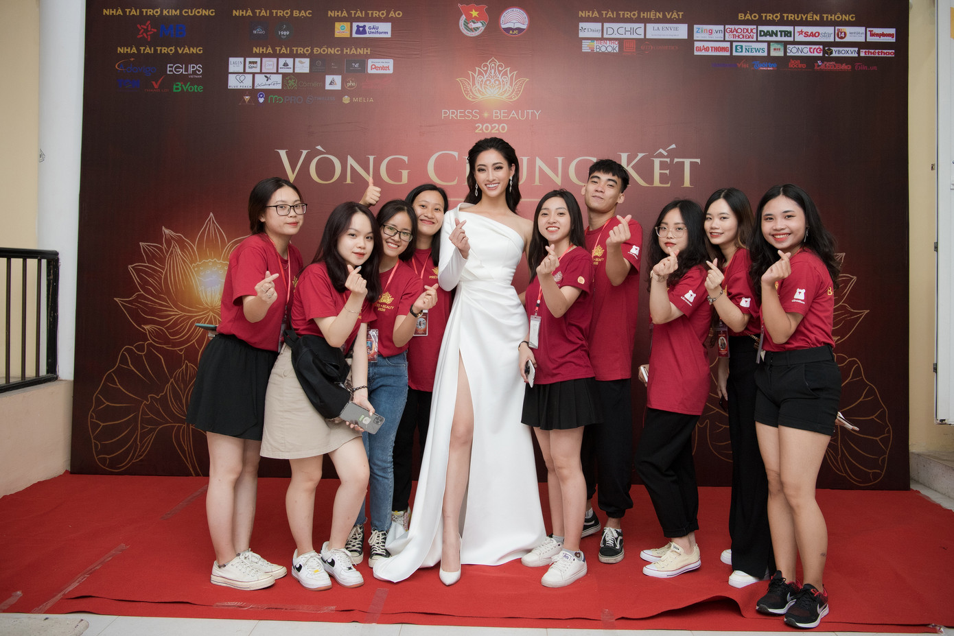 Xuất hiện tại trường Học viện Báo chí và Tuyên truyền, nàng hậu đã thu hút sự chú ý của công chúng khi ngồi vào vị trí “cầm cân nảy mực”.