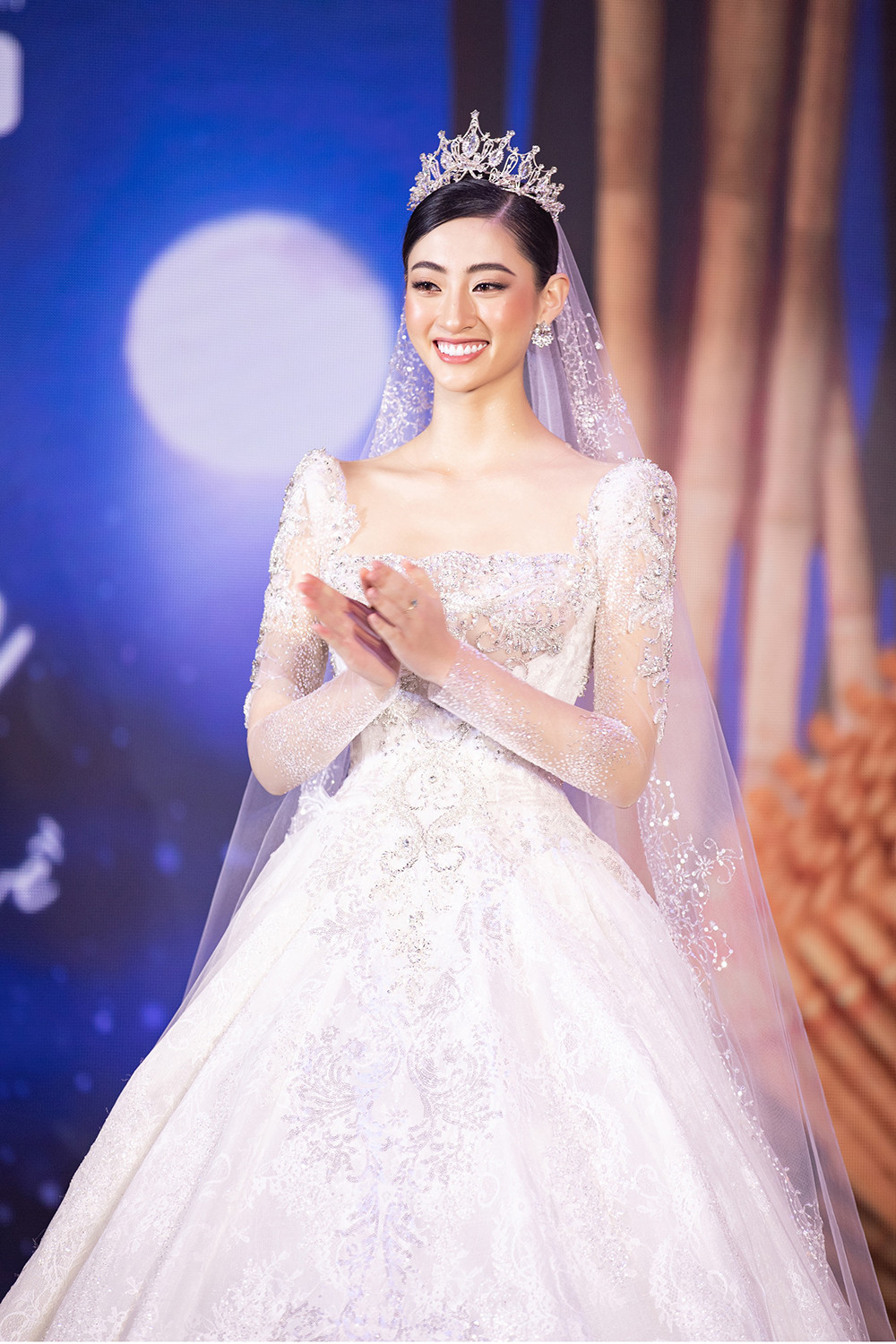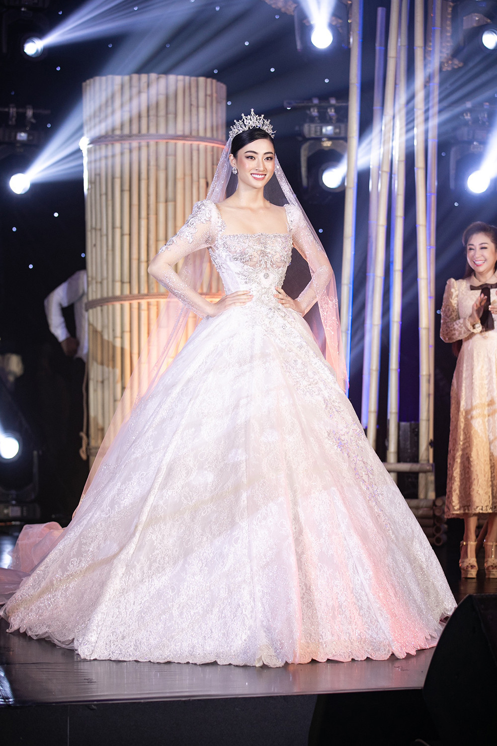 Vừa qua, Hoa hậu Lương Thuỳ Linh đã tham gia trình diễn váy cưới để bán đấu giá trong chương trình “Đà Nẵng, Quảng Nam - Triệu con tim hướng về”. Theo như thông tin từ NTK, chiếc váy có giá trị bán tại cửa hàng là 200 triệu đồng nhưng tại đêm nhạc gây quỹ cô sẽ bán với giá khởi điểm từ 50 triệu.
