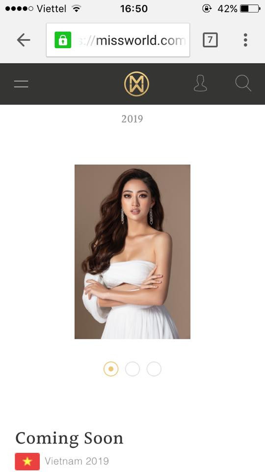 Trên trang chủ của Miss World, đại diện Việt Nam xuất hiện với hai hình ảnh đối lập, biến hóa tài tình với hai tạo hình, một thần thái kiêu sa đầy cuốn hút, vừa mê hoặc đầy quyền lực vừa mềm mại quyến rũ, một khỏe khắn, với những đường cong cơ thể rắn chắc trong đồ thể thao năng động.