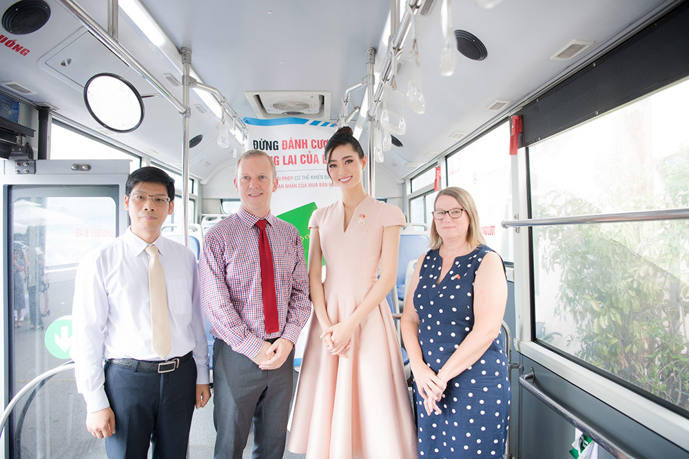 Lương Thuỳ Linh, Đại sứ cùng Lãnh đạo Bộ Công an đã cắt băng khánh thành thông điệp truyền thông trên xe buýt.