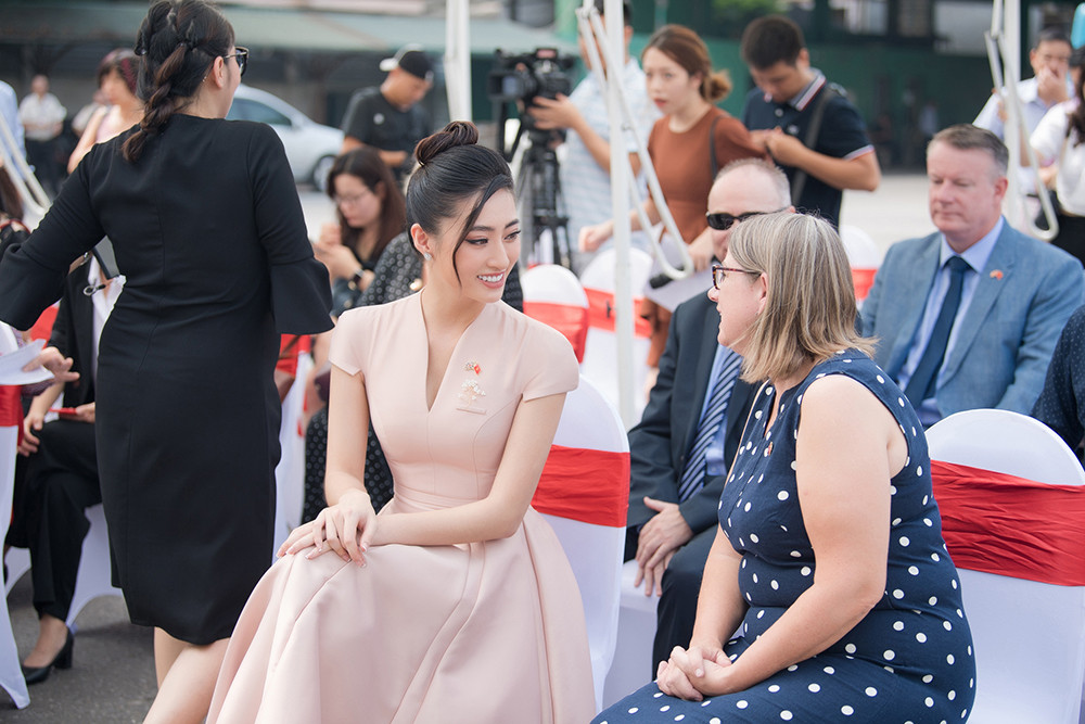 Với trình độ Ielts 7.5, nàng hậu vô cùng tự tin khi gặp gỡ và trò chuyện cùng các khách mời ngoại quốc có mặt tại chương trình.