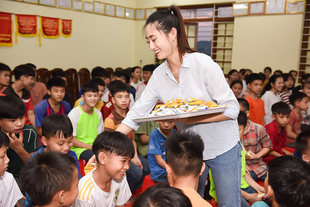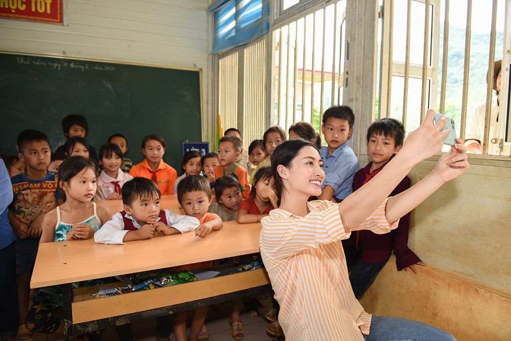 Ngoài việc khánh thành con đường, Hoa hậu Lương Thùy Linh còn mang một món quà đặc biệt cho học sinh điểm trường Lũng Lìu.