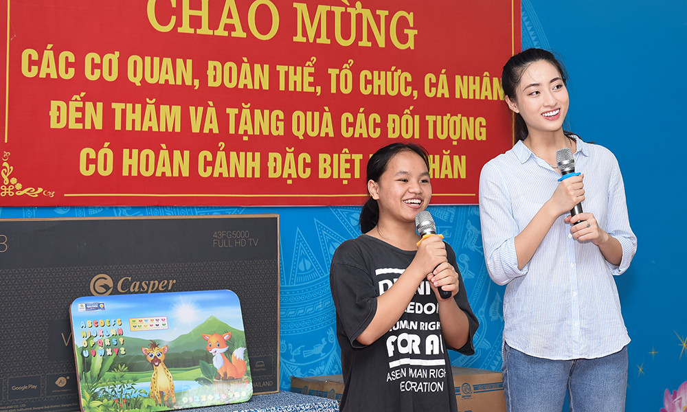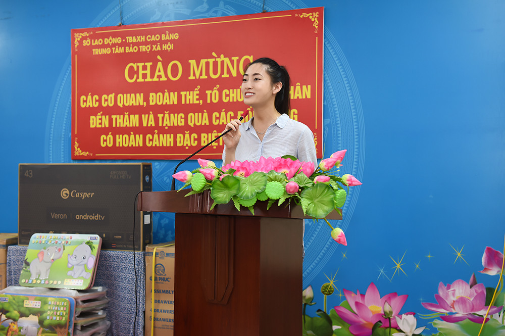 Trước đó, Hoa hậu Lương Thùy Linh cũng đã đến thăm và tặng những vật dụng thiết yếu: tivi, bàn học, tủ,…cho Trung tâm bảo trợ Xã hội tỉnh Cao Bằng.