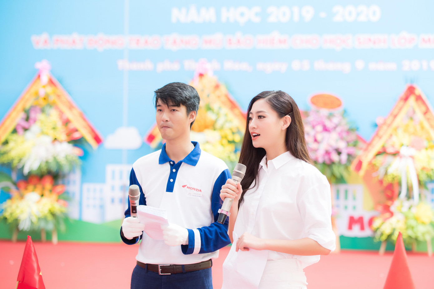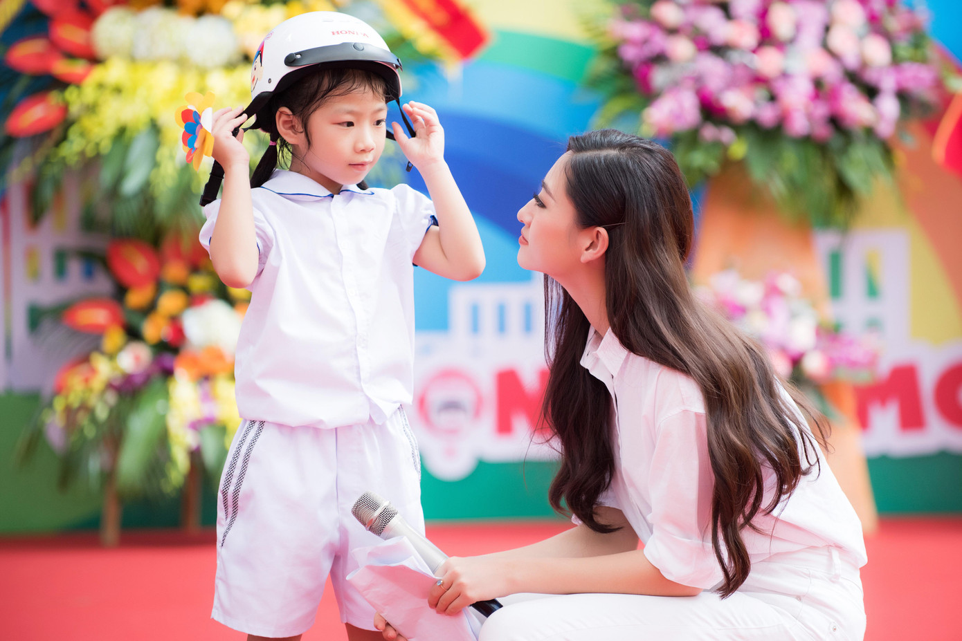 Nàng hậu trẻ đốn tim khán giả với những hình ảnh rạng rỡ như thiên thần khi tự tay trao tặng những chiếc mũ bảo hiểm cho các em nhỏ trong buổi lễ khai giảng 2019-2020 tại Thanh Hóa. “Đội mũ cho con trọn tình cha mẹ” là một chiến dịch đầy ý nghĩa từ Ủy ban An toàn giao thông quốc gia. Đây là chiến dịch tặng mũ bảo hiểm lớn chưa từng có tại Việt Nam khi khoảng gần 2.000.000 mũ bảo hiểm sẽ được tặng cho tất cả học sinh lớp 1 từ nông thôn đến thành thị, từ miền núi tới đồng bằng, sông nước và cả các em hàng ngày đi bộ tới trường đều nhận được mũ.