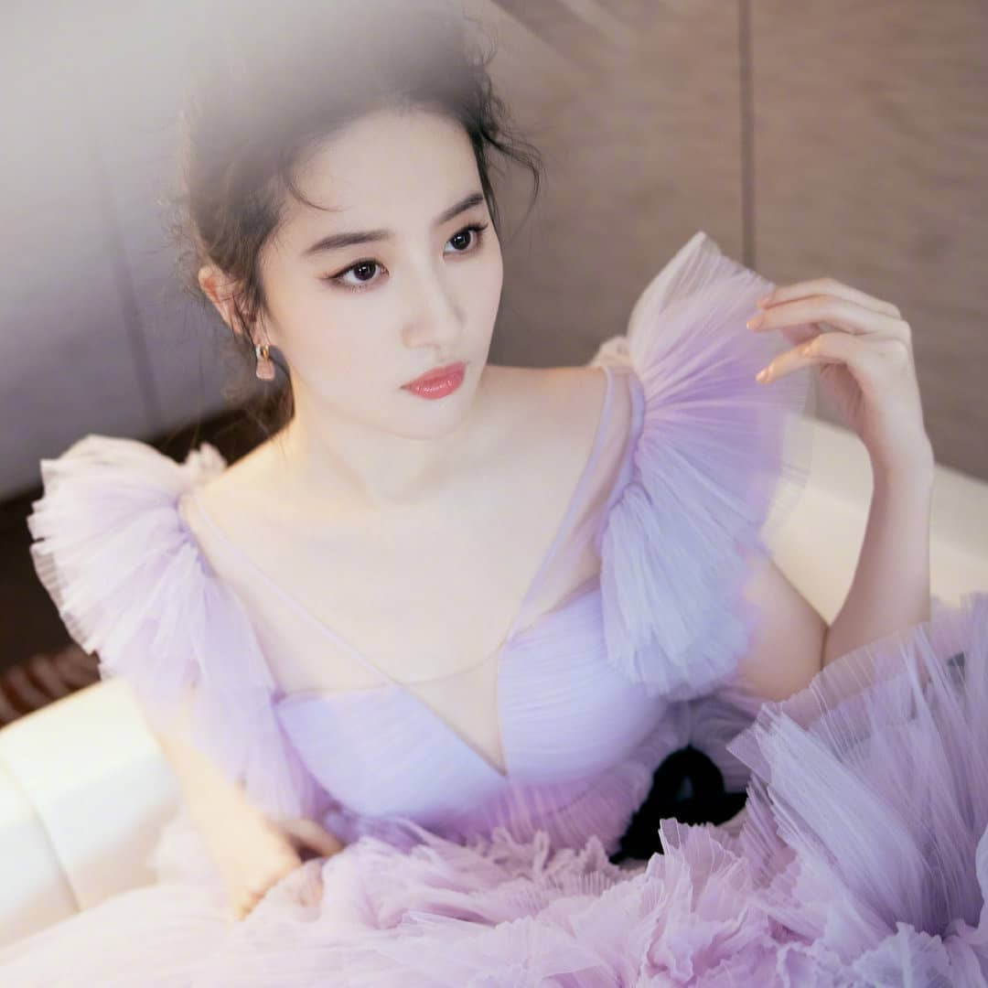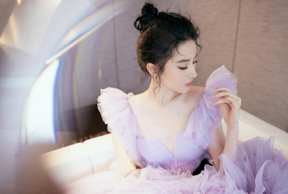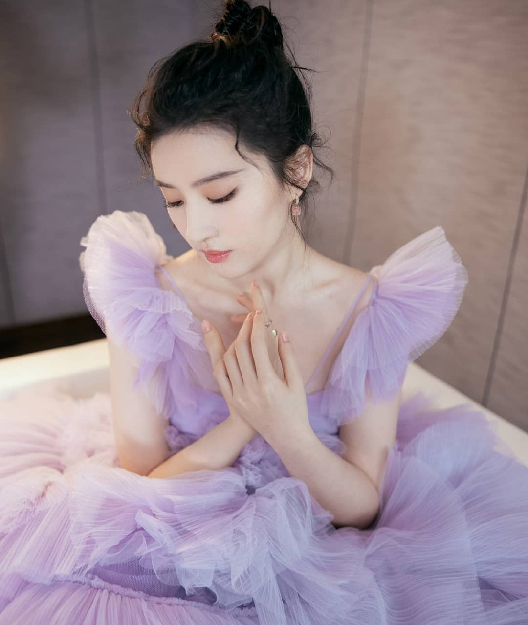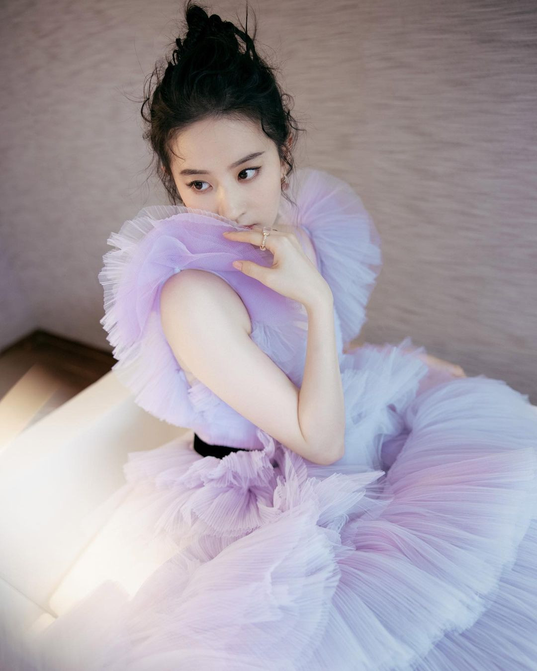 Bộ đầm cầu kỳ xếp tầng bồng bềnh tôn làn da trắng mịn và vóc dáng mảnh mai gợi cảm của Lưu Diệc Phi.