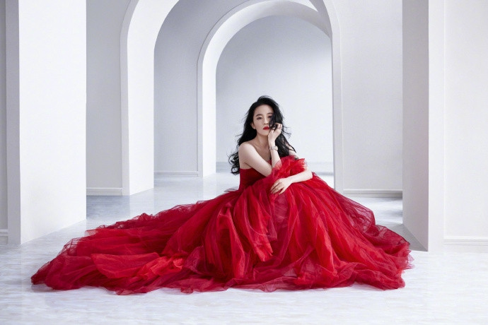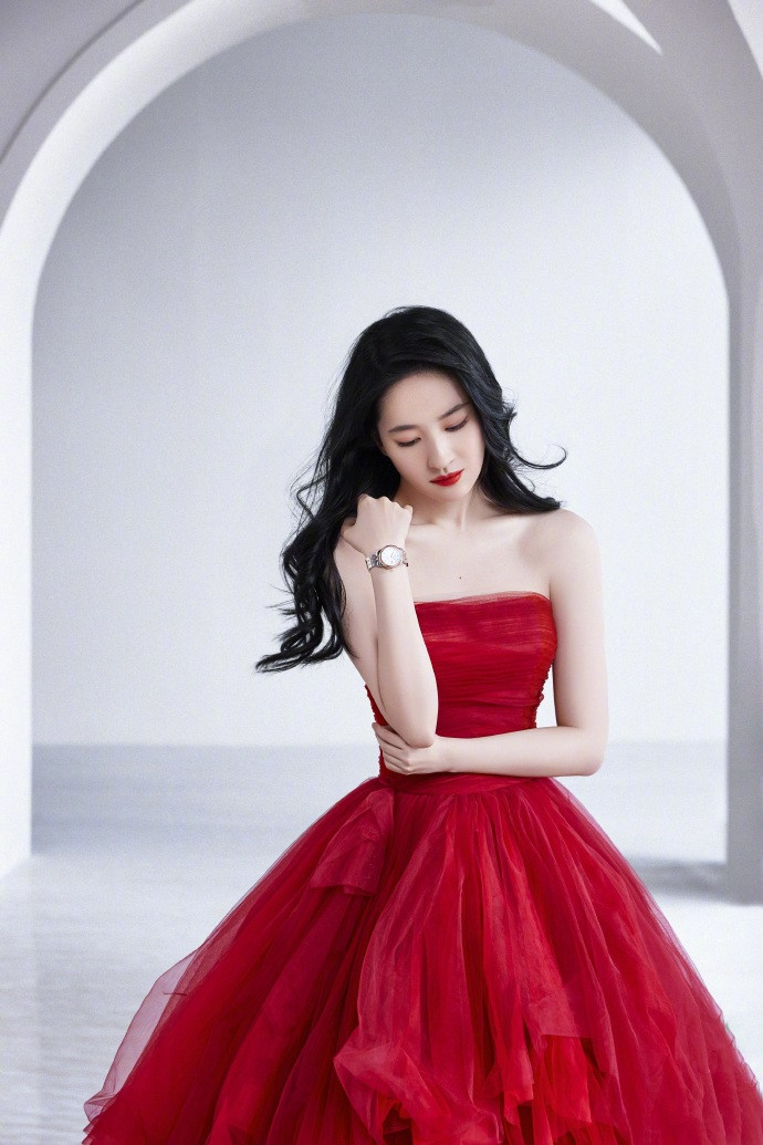 Lưu Diệc Phi xinh như công chúa với đầm đỏ cúp ngực.