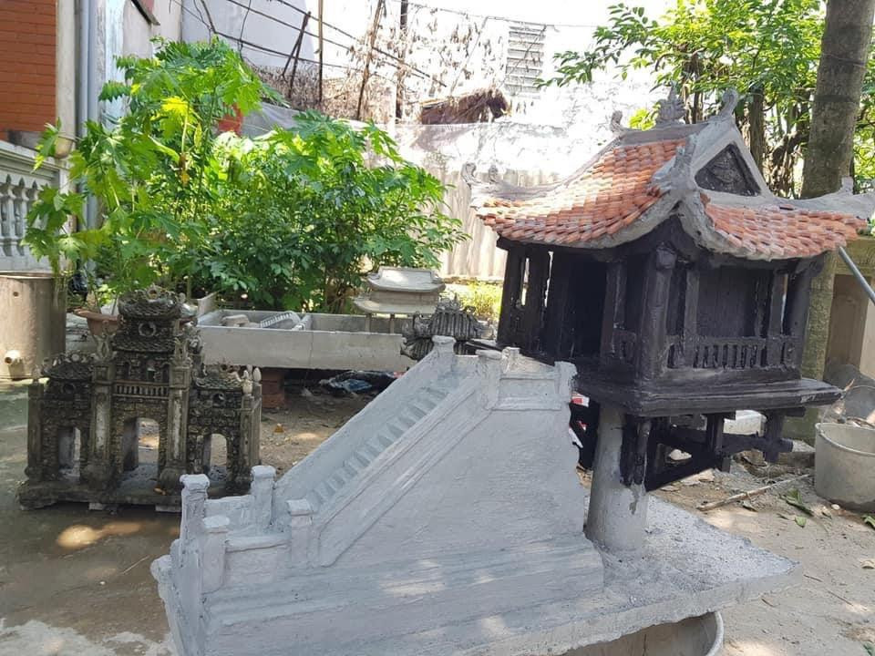 Tác phẩm đầu tay “Chùa Một cột” của Trương Văn Bộ khi mới 7 tuổi, sau này Bộ sơn lại, ghép "lợp" mái cho tiểu cảnh.