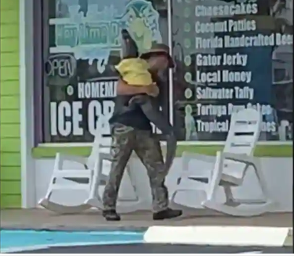 Những hình ảnh của bác Louie và “thú cưng” đặc biệt của mình được một người tên là Rachel Bowman chia sẻ trên TikTok. Trong đó, ban đầu, Sweetie chỉ nằm ở ngoài cửa tiệm. Thế rồi bác Louie đi ra và bế nó lên - như bế một em bé - để vào tiệm, còn Sweetie thì thích thú vẫy đuôi.