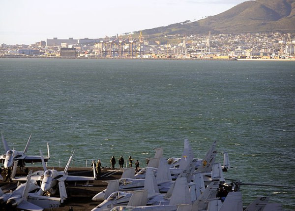 Trong chuyến thăm của Tổng thống Obama đến Cape Town, Nam Phi, các tàu của Hải quân Mỹ được trang bị trung tâm y tế trị thương canh chừng gần bờ biển