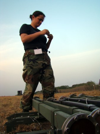 Các phương tiện được chở đến địa điểm bao gồm “phương tiện liên lạc đặc biệt để bảo đảm kết nối video và điện thoại được bảo mật và một xe tải làm nhiệm vụ gây nhiễu thiết bị radio xung quanh đoàn xe hộ tống tổng thống, theo một báo cáo năm 2009. Trong ảnh là nhân viên của Không quân Mỹ, Trung sĩ Zoe Didier-Purdi, một kỹ thuật viên bảo vệ điện tử thuộc Phi đội kiểm soát trên không tại Căn cứu không quân Ramstain.